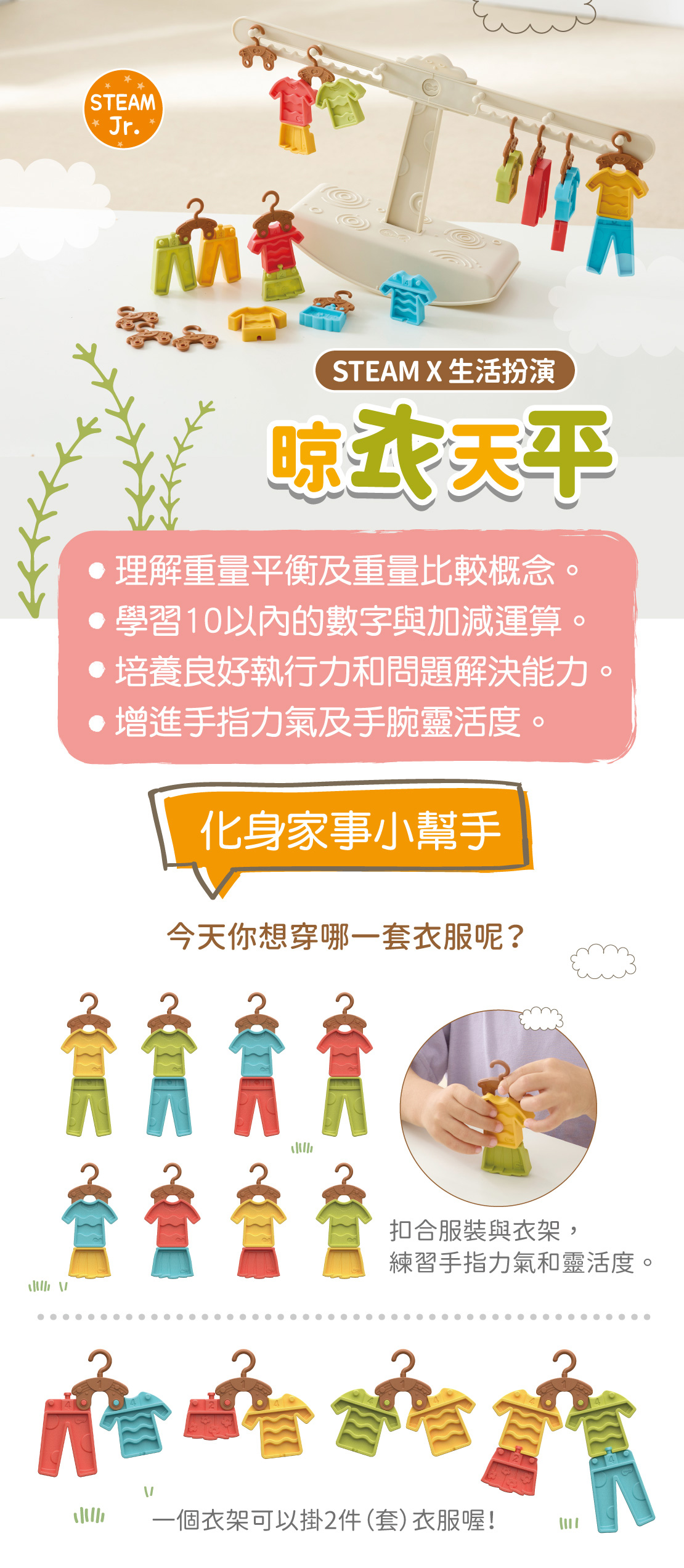 - 兩種掛衣模式,練習手指及手腕的靈巧活動力。
