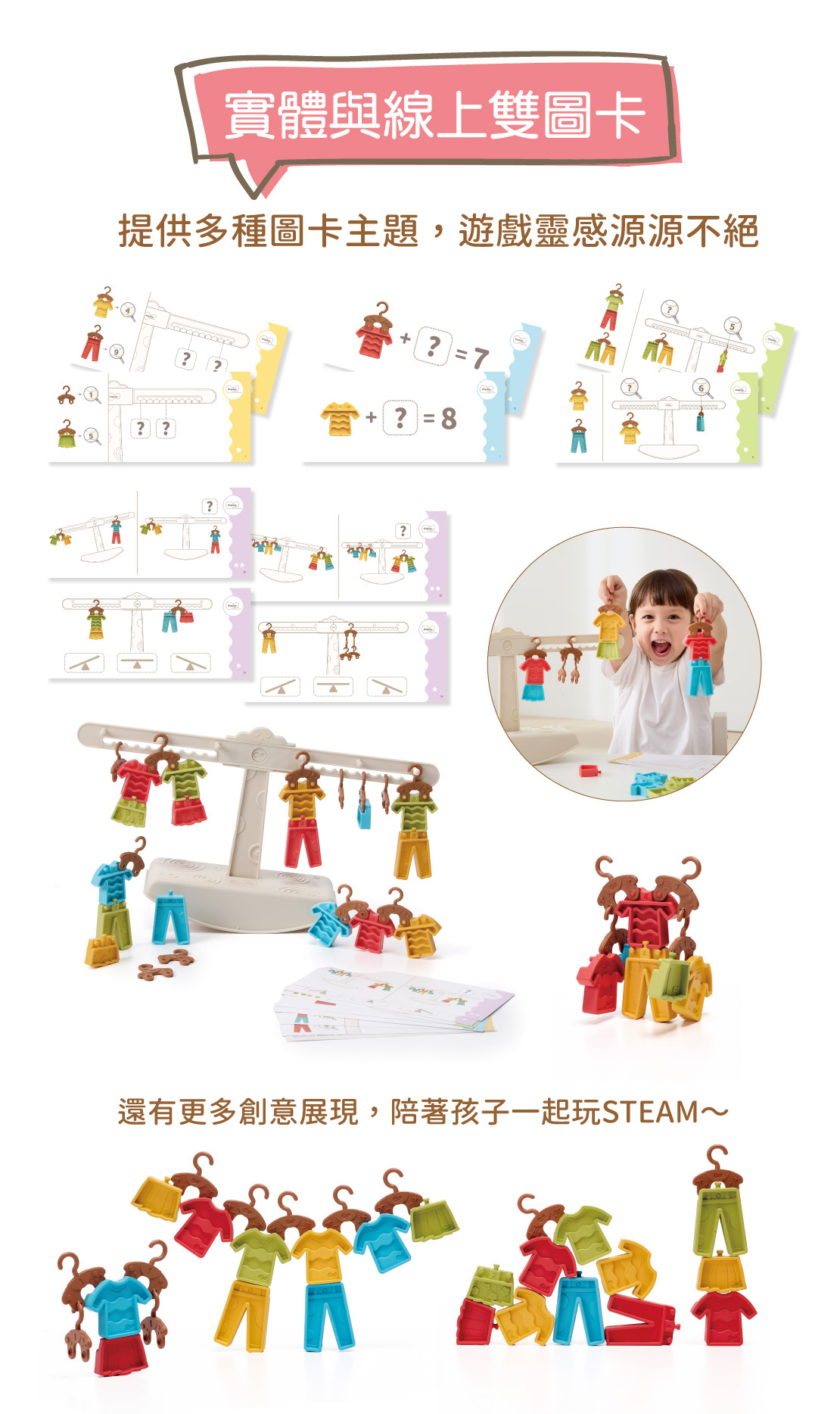 - 雙面天平設計,讓數學與科學遊戲變得好玩、好懂、好操作。