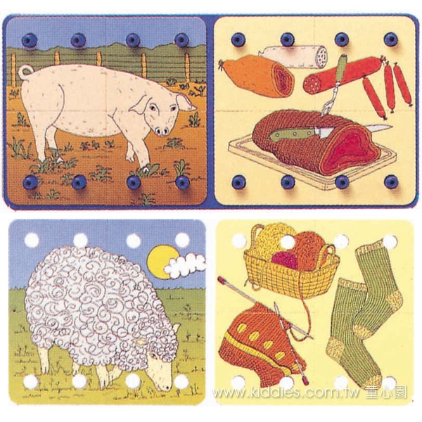- 底板一面可收納圖卡、另一面可串接拼圖、避免滑動。