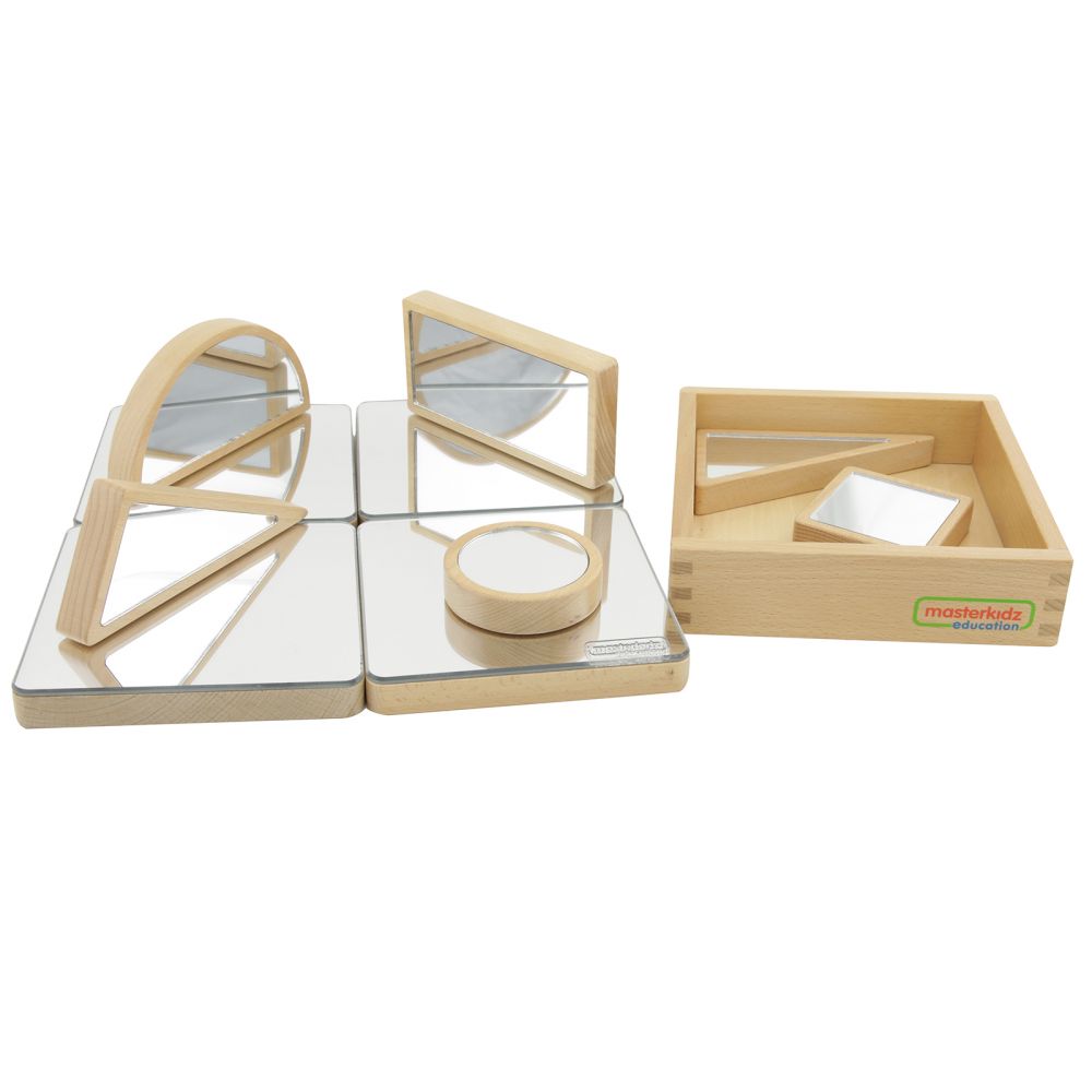 積木兩面為鏡子和白板,在堆疊建構時可觀察不同材質呈現出的效果。