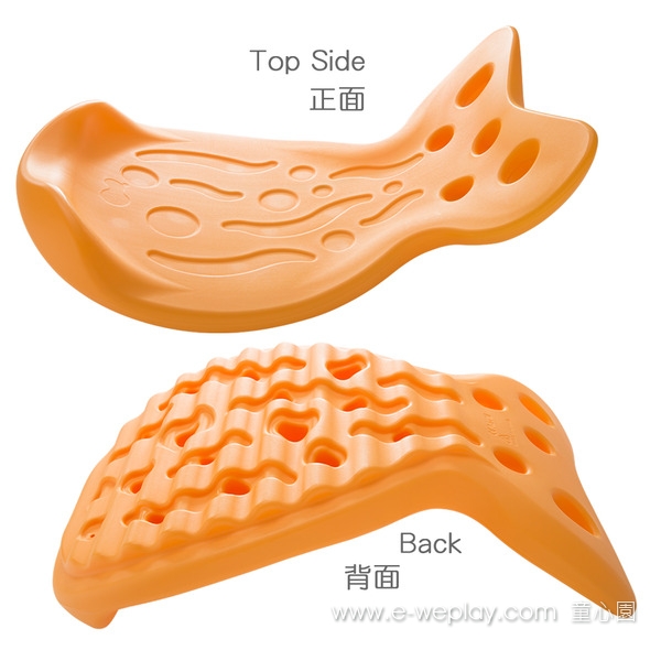 - 平衡板可做為路徑踩踏,藉由路徑的變化,活化幼兒的調適保護反應。