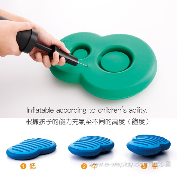 - 可調整內部充氣飽度,提供高、中、低的高度與踩踏難易度。