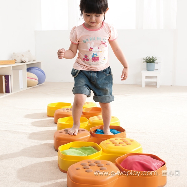 - 步道紋路與容器運用,提供孩子不同觸覺及感官刺激。