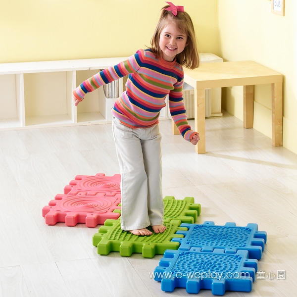 • 三種不同的踩踏圖案,帶給孩子腳底或手部的觸覺刺激,感受形狀、空間的差異,增加感官觸覺的敏感度。