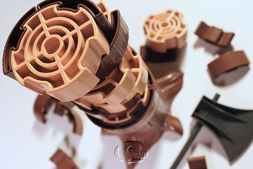 首先,所有的玩家把4塊樹皮和1塊樹心組合成圓,並且把組合好的圓層層疊在樹根上組成樹塔。