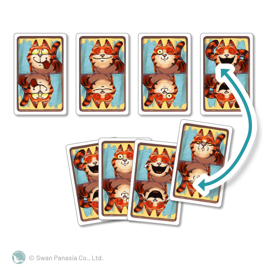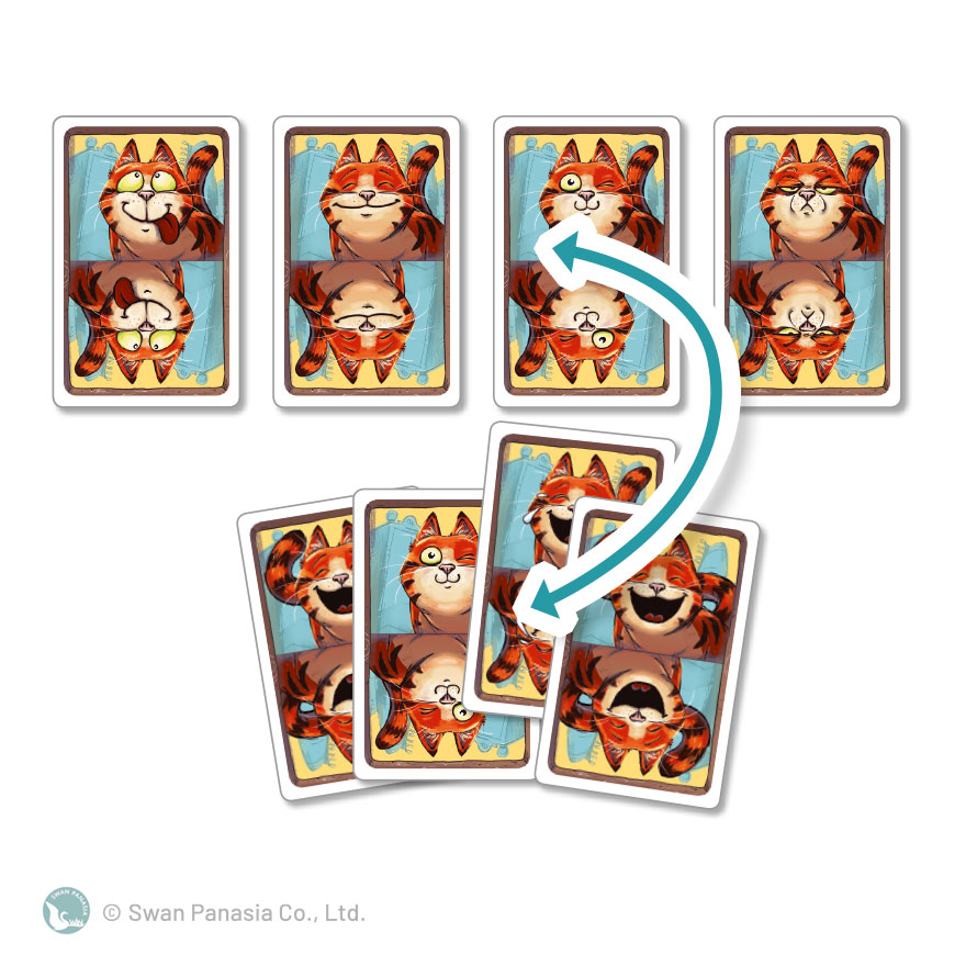 當你讓自己每疊牌中包含4張表情相同的貓咪時,立刻「喵!」一聲。