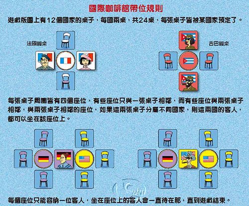 遊戲目的是盡你所能將客人拉攏進咖啡館,並將客人們按照遊戲規則帶位到圓桌區或是吧檯區。