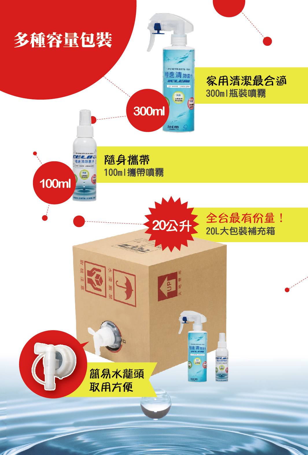 產品成分:50ppm弱酸性次氯酸水(HCIO)