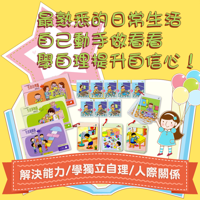 現在的父母都相當重視孩子的團體適應能力,經常透過帶孩子參與活動,磨練孩子與人相處的經驗及調適的能力。在剛開始學習時,會需要一個模仿對象,生活連續圖卡將事件的動作分解成好幾個關鍵動作,一步一步示範,讓孩子跟著學習跟著做,對於幫孩子和同儕之間建立起遊戲規則,也能保護孩子的遊戲安全,以及建立自信心,都有正面的幫助!